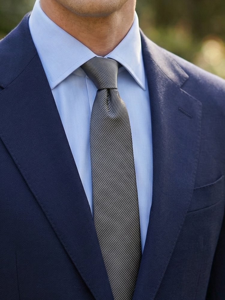 Тъмносива тясна вратовръзка и кърпичка за сако