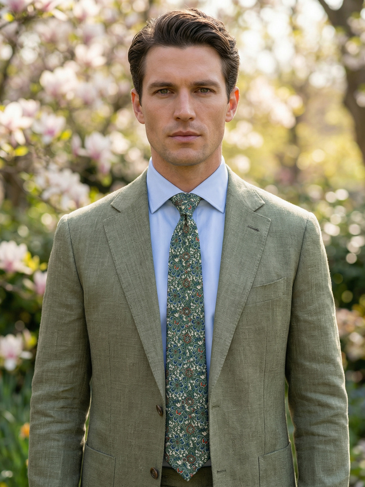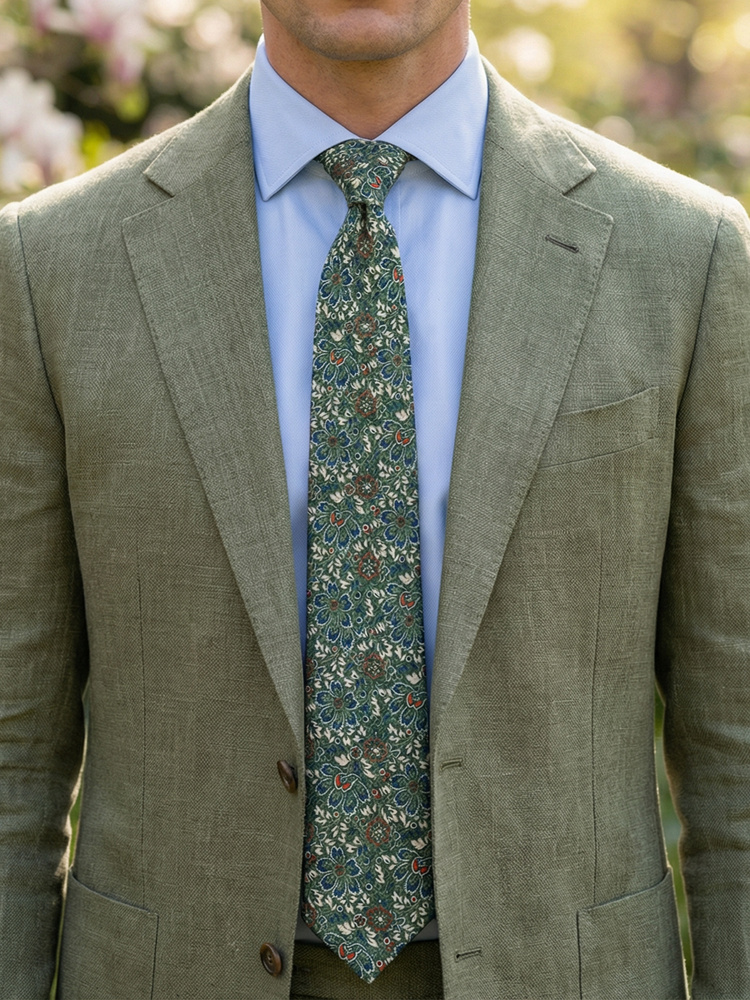 Кърпичка за сако тъмнозелена с флорален мотив Летни цветя
