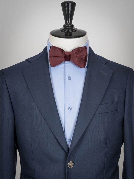 A burgundy bow tie goes particularly well with dark suits, such as a navy blue or dark grey, where it creates a stylish contrast. For a truly classic look, pair it with a white shirt and black shoes for a timeless and formal look that works well at weddings, galas or other formal events.