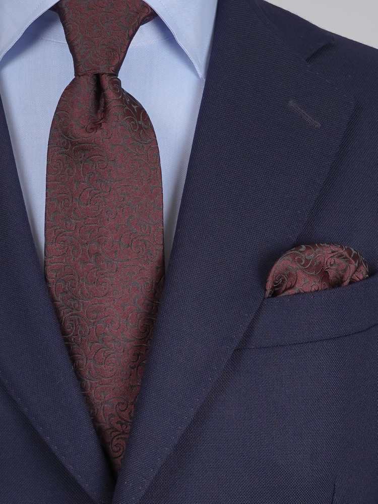 Vínový hedvábná kravata set s kapesníčkem