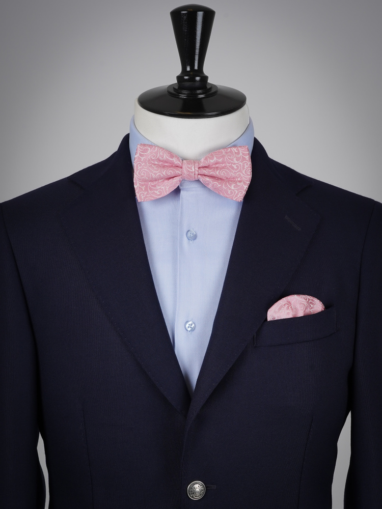 Světle růžový hedvábný motýlek set s kapesníčkem