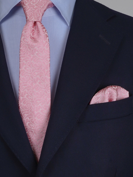 Světle růžový hedvábná kravata set s kapesníčkem