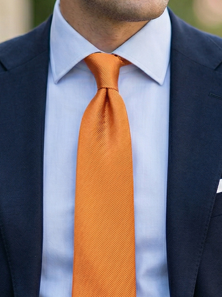 Et mørkeblåt eller gråt jakkesæt er et godt valg sammen med et orange slips, da disse farver supplerer hinanden godt og er med til at bløde den orange intensitet op. Denne kombination er ikke kun iøjnefaldende, den er også klassisk og sofistikeret, hvilket gør den velegnet til både forretningsmøder og sociale arrangementer.