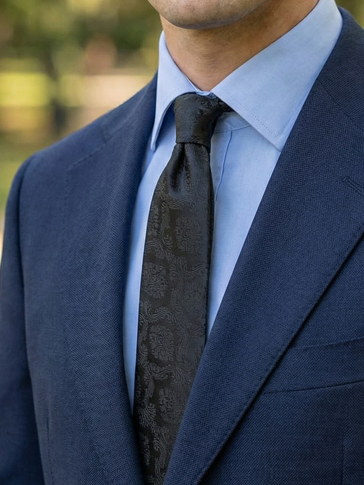 Dette smalle slips er perfekt til bryllupper med sit klassiske bryllupsmønster. Det diskrete og elegante design er især velegnet til formelle events, men kan også bæres ved andre arrangementer. Forstærkede sømme og streng kvalitetskontrol sikrer lang holdbarhed til mange års brug.
