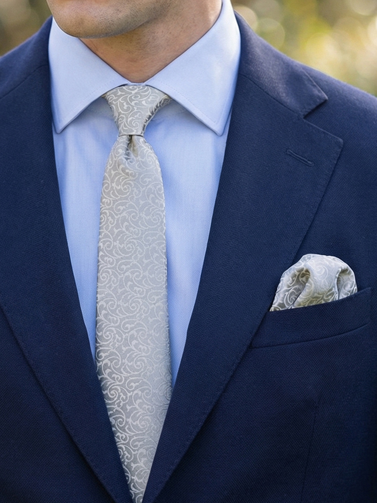 Sølv silkeslips & lommeklud Lusso