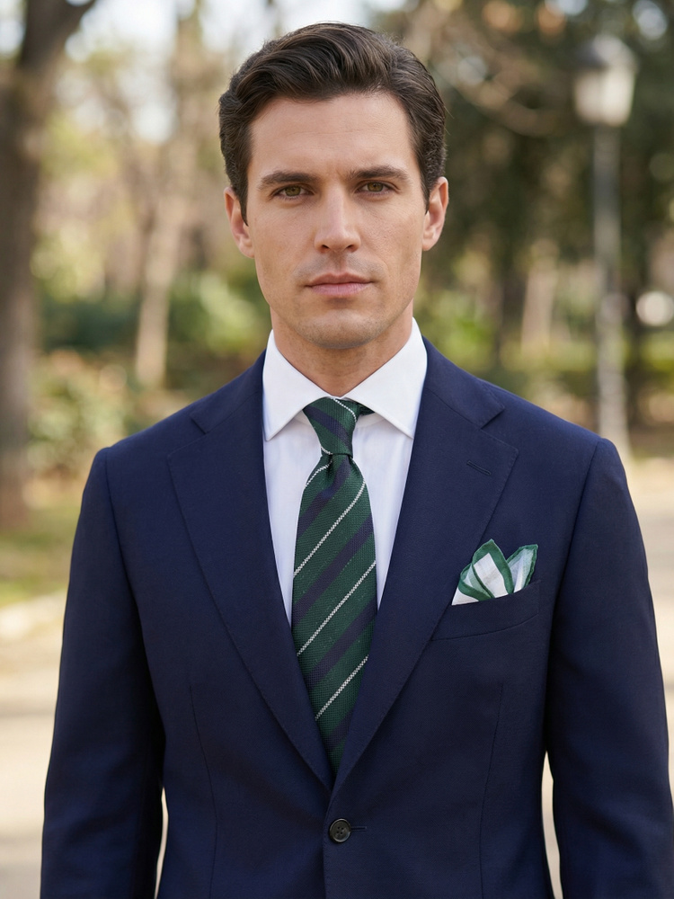 Mørkegrøn silkeslips & lommeklud Lusso