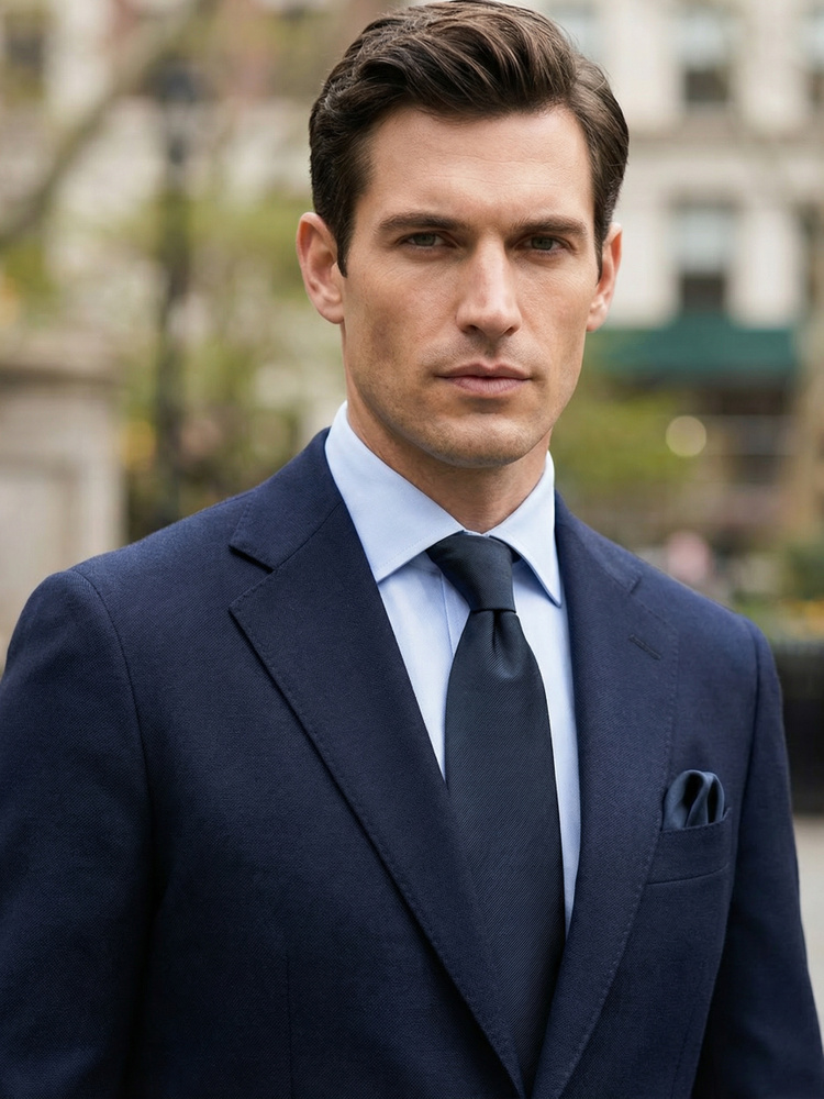 Marineblaue Seidenkrawatte & Einstecktuch Lusso