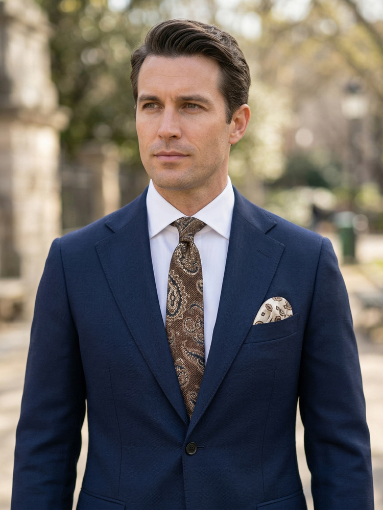 Dunkelbraune Grenadine-Krawatte & Einstecktuch