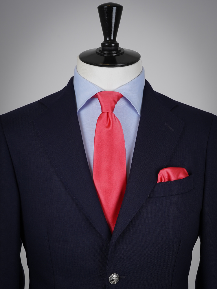 Κοραλλί σατέν γραβάτα και μαντήλι