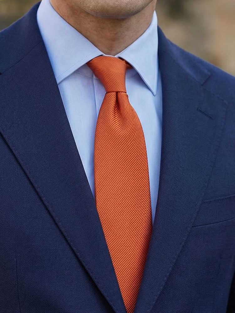 Corbata estrecha naranja óxido & pañuelo de bolsillo