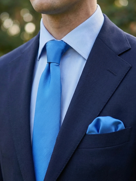 Corbata slim de seda azul claro & pañuelo de bolsillo