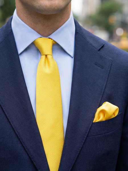 Corbata estrecha amarilla & pañuelo de bolsillo