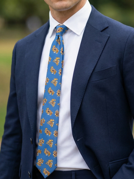 Paisley-solmio on loistava valinta niille, jotka haluavat lisätä asuunsa hienovaraisen mutta ilmeikkään lisän. Klassinen ja ajaton paisley-kuvio antaa eleganssia ja luonnetta ilman, että se on ylivoimainen. Jotta solmion kuvio pääsisi parhaiten esiin, yhdistä se yksivärisen paidan ja neutraalin värisen puvun, kuten laivastonsinisen, harmaan tai mustan, kanssa. Näin luot tasapainoisen ja hienostuneen ilmeen, jossa solmio on pääosassa.