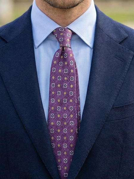 Violetti solmio on klassinen, ajaton ja sopii kaikkiin vuodenaikoihin valitusta väristä riippuen. Vaalea violetti solmio sopii kaikkiin kevään ja kesän tapahtumiin, kun taas tummempi väri sopii paremmin syksyyn ja talveen. On viisasta investoida violettiin solmioon, sillä se sopii yhtä hyvin virallisiin kuin epävirallisiinkin tilaisuuksiin ja se on helppo yhdistää erilaisiin asuihin. Yhdistä solmio mustaan, tummansiniseen tai harmaaseen pukuun ja vaaleansiniseen tai valkoiseen paitaan, niin saat klassisen ja yksinkertaisen ilmeen.