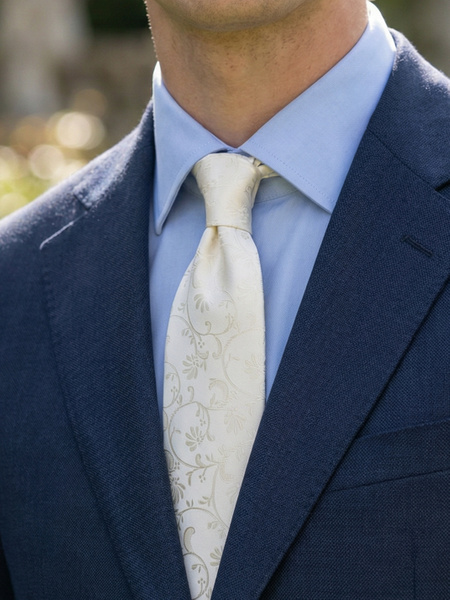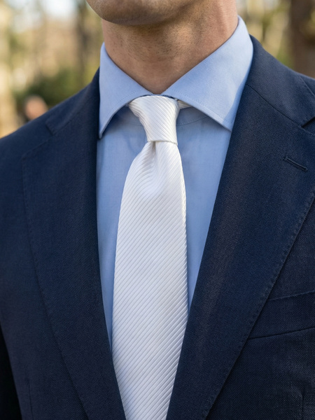Valkoinen solmio tummansinisen puvun ja vaaleansinisen paidan kanssa antaa raikkaan ilmeen, joka erottuu edukseen. Valkoista solmiota valkoisen paidan kanssa kannattaa välttää, sillä se ei näytä hyvältä. Ainutlaatuisesta käsintehtyjen valkoisten solmioiden kokoelmastamme löydät kaiken yksivärisistä kuviollisiin variantteihin. Tarjoamme valikoituja materiaaleja, jotka kestävät paljon käyttöä ja jotka antavat solmioon oikeat ominaisuudet, kuten kauniin laskeutumisen ja siistit solmut. Niille, jotka haluavat sovittaa ulkoasun lastensa kanssa, meillä on valkoisia lasten solmioita.