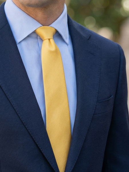 Keltainen solmio on loistava valinta niille, jotka haluavat lisätä asuunsa ripauksen energiaa ja positiivisuutta. Keltainen on väri, joka symboloi optimismia ja lämpöä, ja se voi luoda raikkaan ja eloisan kontrastin, kun se yhdistetään oikeaan vaatteeseen. Saat tyylikkään ja tasapainoisen ilmeen yhdistämällä keltaisen solmion tummansiniseen tai harmaaseen pukuun ja valkoiseen tai vaaleansiniseen paitaan. Näin solmion väri tulee esiin ilman, että se on liian voimakas.