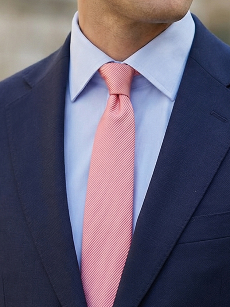 Cravate rose saumon avec pochette de costume