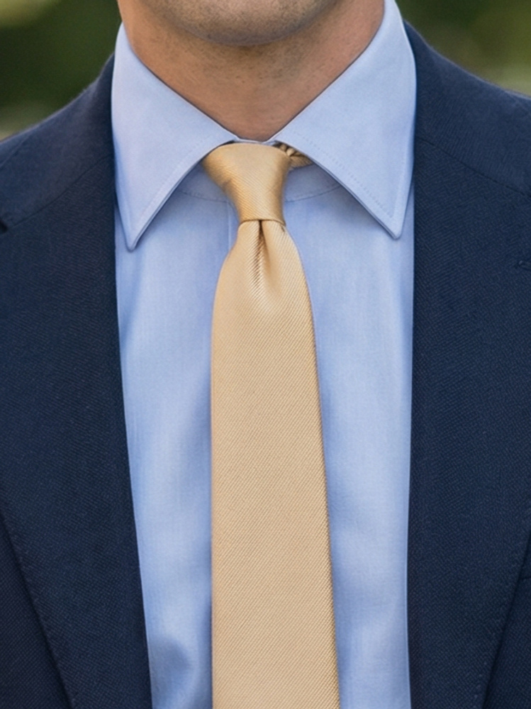 Vječna klasika koja nikada ne izlazi iz mode, ova uska kremasto zlatna svilena kravata savršena je kako za zabave, tako i za posao. Ručno izrađena od 100% svile, ima suptilnu prugastu teksturu za luksuzan dojam. Razvijena i dizajnirana u Švedskoj, s pažljivo razmotrenim detaljima za savršenstvo. Unutarnji materijal od mješavine vune osigurava uredan čvor i ravno pada. Materijal dobro diše, pružajući udobnost. Stražnja strana kravate je od svilenog materijala, poznatog kao self-tipping, s ojačanim šavovima za visoku izdržljivost.