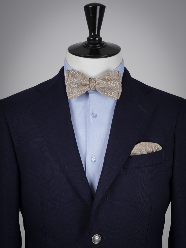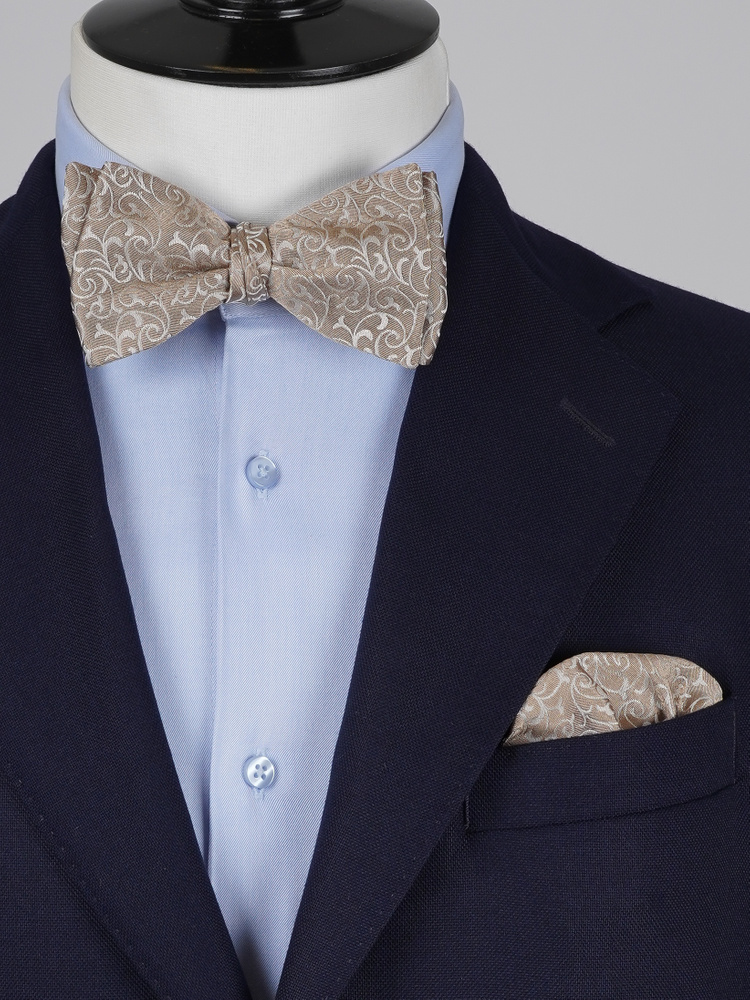 Aranybézs önkötő selyem csokornyakkendő díszzsebkendővel