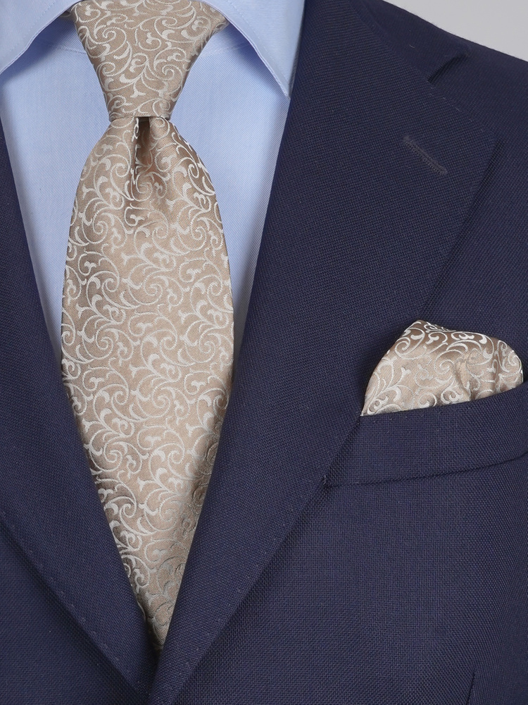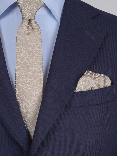 Aranybézs selyem nyakkendő díszzsebkendővel