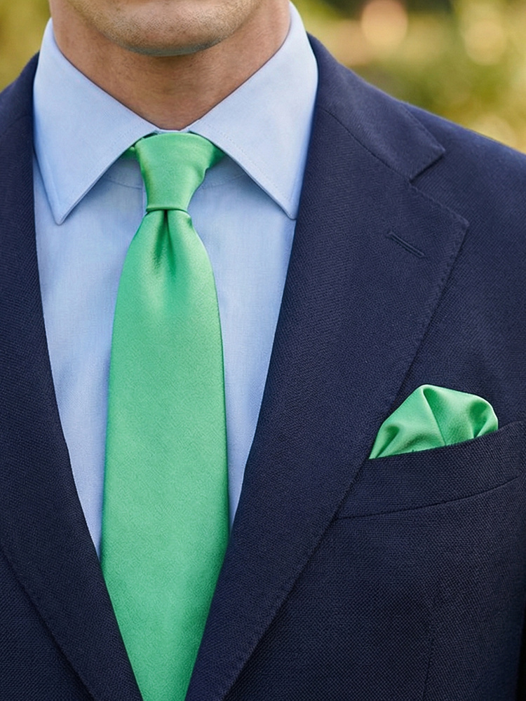 Világoszöld szatén nyakkendő díszzsebkendővel