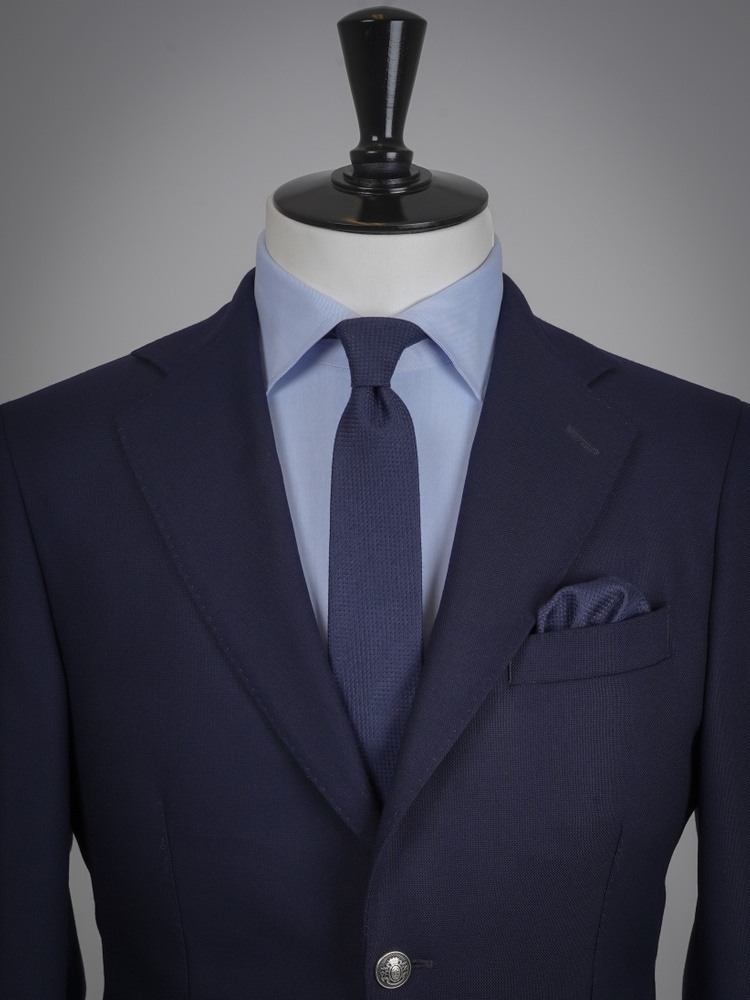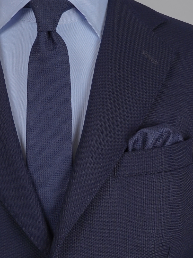 Sötétkék szűk kasmír grenadine nyakkendő és díszzsebkendő