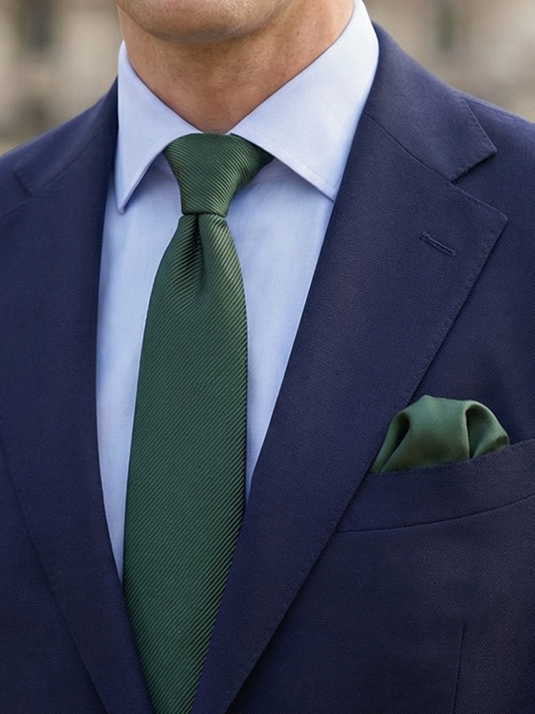 Cravatta di seta verde scuro & fazzoletto da taschino Lusso