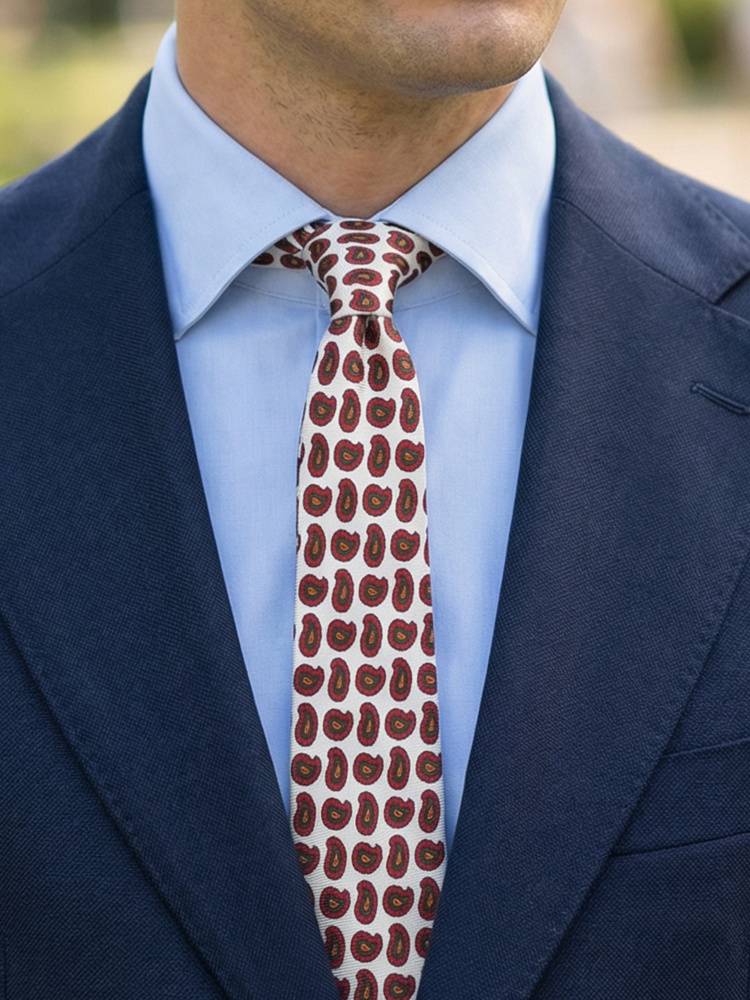 Cravatta stretta in twill di seta 100% di alta qualità, con una texture piacevole. Un accessorio distintivo del nostro marchio, Neckwear. Cucita a mano con precisione e cuciture rinforzate. L'interfodera in lana garantisce una caduta perfetta e un nodo elegante. Il retro è in seta self-tipping, identica alla parte anteriore.