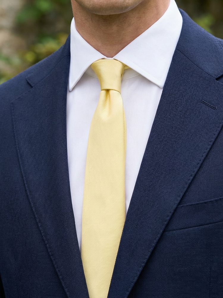 Een tijdloze klassieker die nooit uit de mode raakt: deze smalle lichtgele zijden stropdas is perfect voor zowel feesten als voor het werk. Met de hand gemaakt van 100% zijde en voorzien van een subtiele gestreepte textuur voor een luxueus gevoel. Ontwikkeld en ontworpen in Zweden, met oog voor detail voor de perfecte stropdas. Het binnenmateriaal van wolmix zorgt voor een nette knoop en rechte val. Ademend materiaal biedt comfort om de nek. De achterkant is van zijden stof, bekend als self-tipping. Versterkte naden op kwetsbare plekken garanderen duurzaamheid.