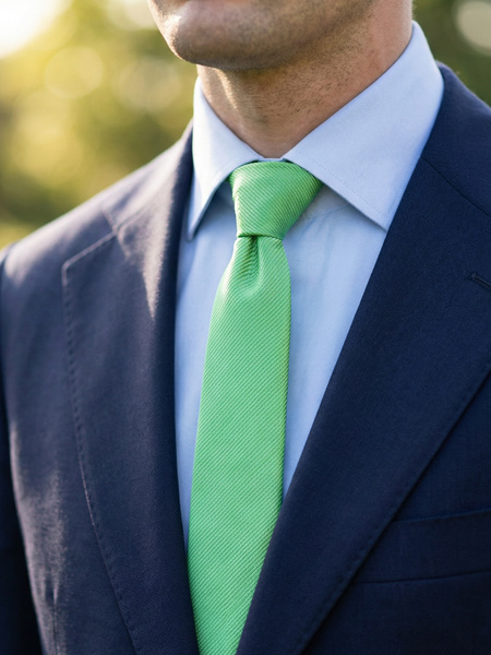 Grønne slips fungerer godt til både forretnings- og fritidsarrangementer og har økt kraftig i popularitet de siste årene. Det er spesielt populært til sommerbryllup utendørs for å matche de frodige, grønne omgivelsene. Det er relativt enkelt å matche et grønt slips, ettersom det nesten alltid passer godt sammen med mørke dresser og lyse skjorter. Et stilig antrekk er et mørkegrønt ensfarget silkeslips til en mørkeblå dress og hvit skjorte. Tilbehør som et hvitt lommetørkle med grønne detaljer tar stilen til neste nivå. Et grønt slips er et allsidig tilbehør som kan brukes til mange forskjellige anledninger, og er derfor et godt basisplagg å ha i garderoben.
