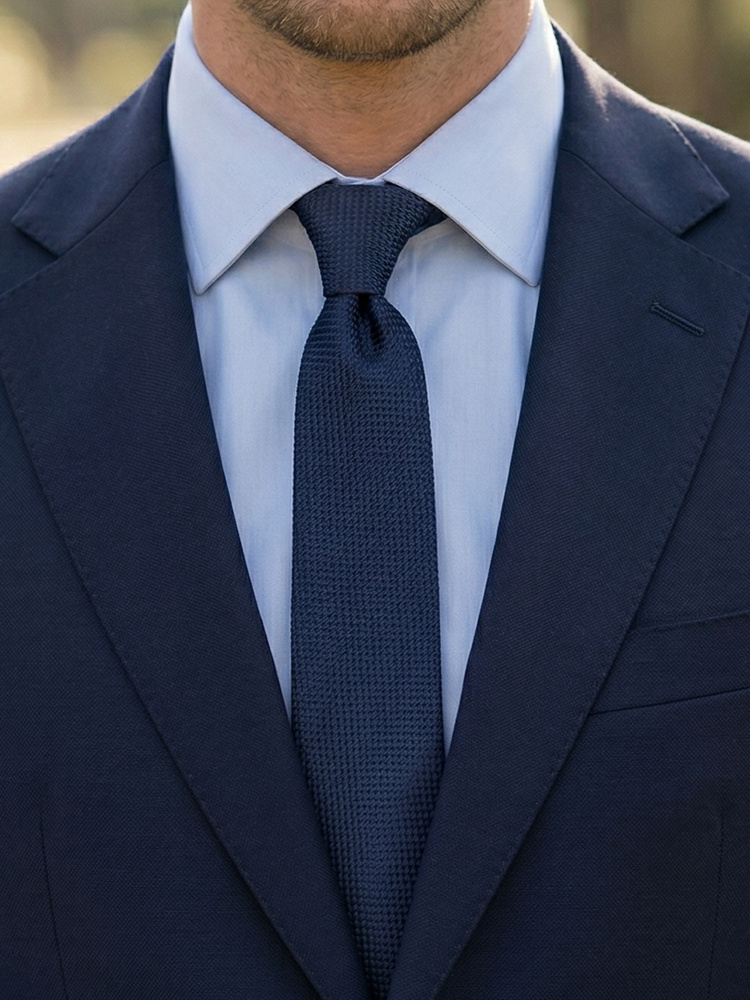 Marineblå selvbinder silkesløyfe & lommetørkle