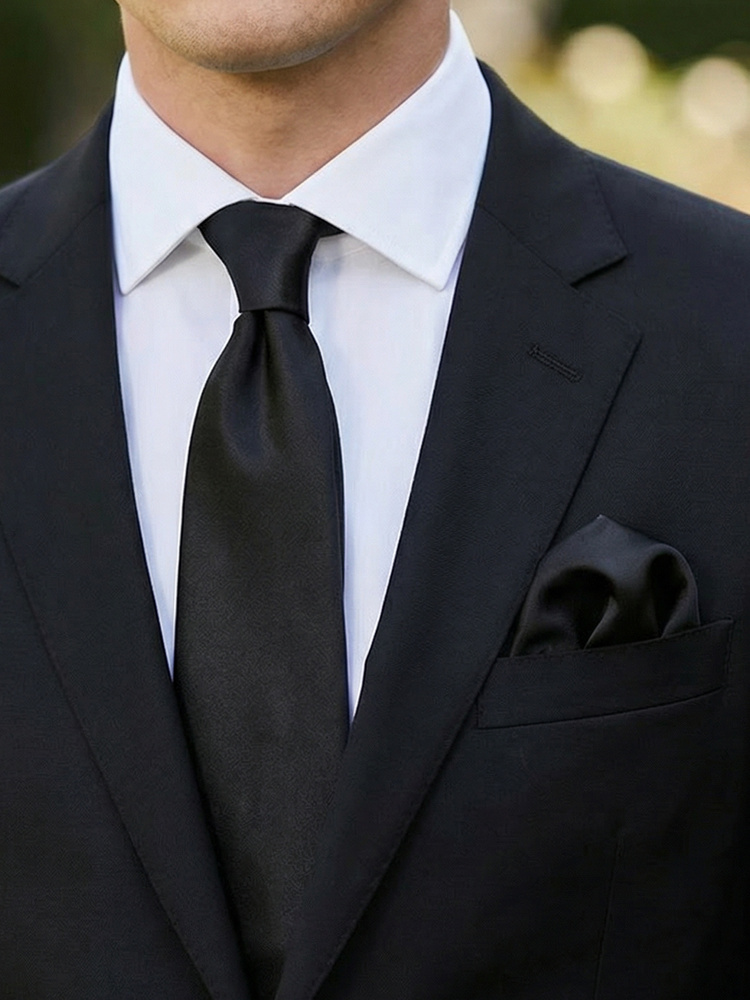 Black satin tie & hanky