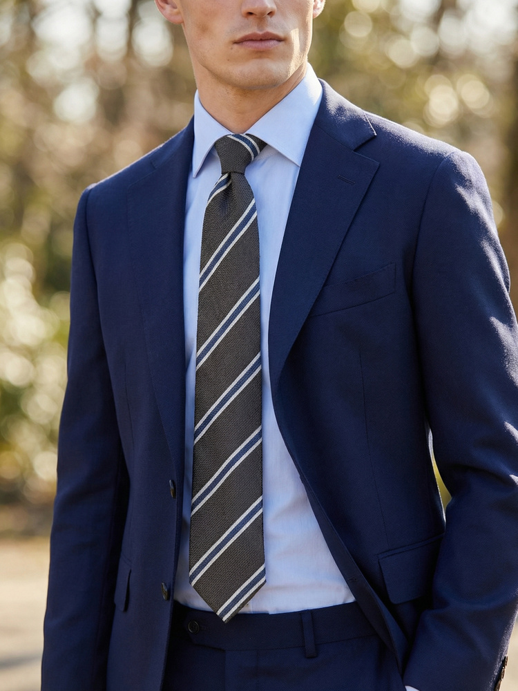 Blue striped shantung tie Milano