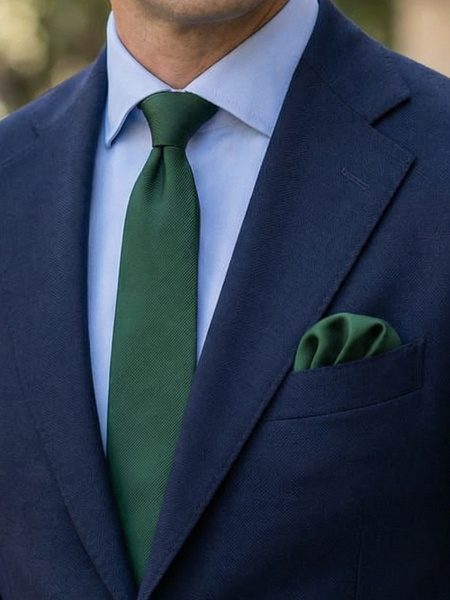 Dark green skinny tie & hanky Lusso