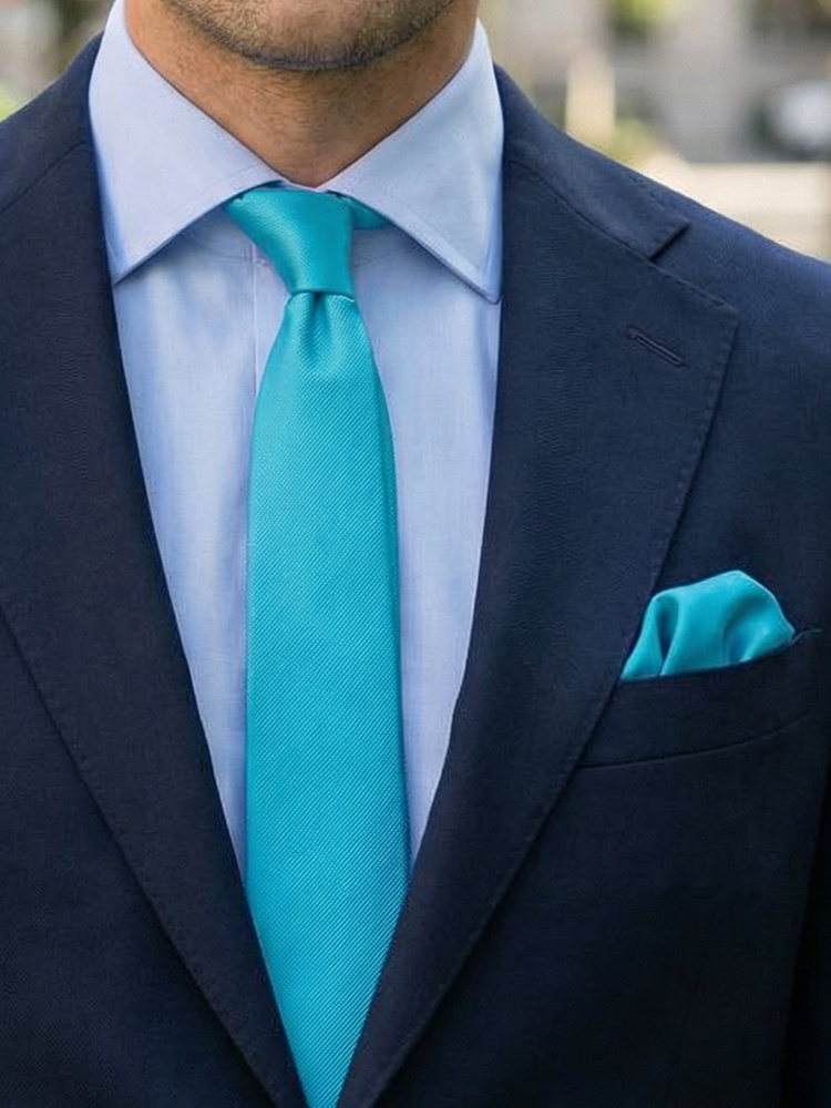 Turquoise skinny tie and handkerchief in matching color. The tie and pocket square are handmade in 100% silk. With careful attention to detail and perfect cuts, the tie is of the best quality. Without intermediaries, we can keep prices low without compromising on quality. The back of the tie is made of the same silk material, which is called self-tipping. The inner material is made of a wool blend to give the tie a good knot and a nice fall. The tie is 6 cm wide and the handkerchief 28 x 28 cm. Swedish design.