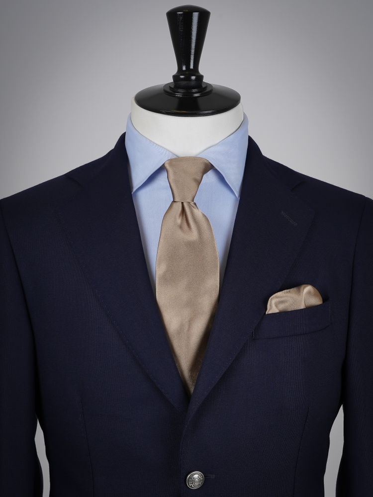 Warm beige satin tie & hanky
