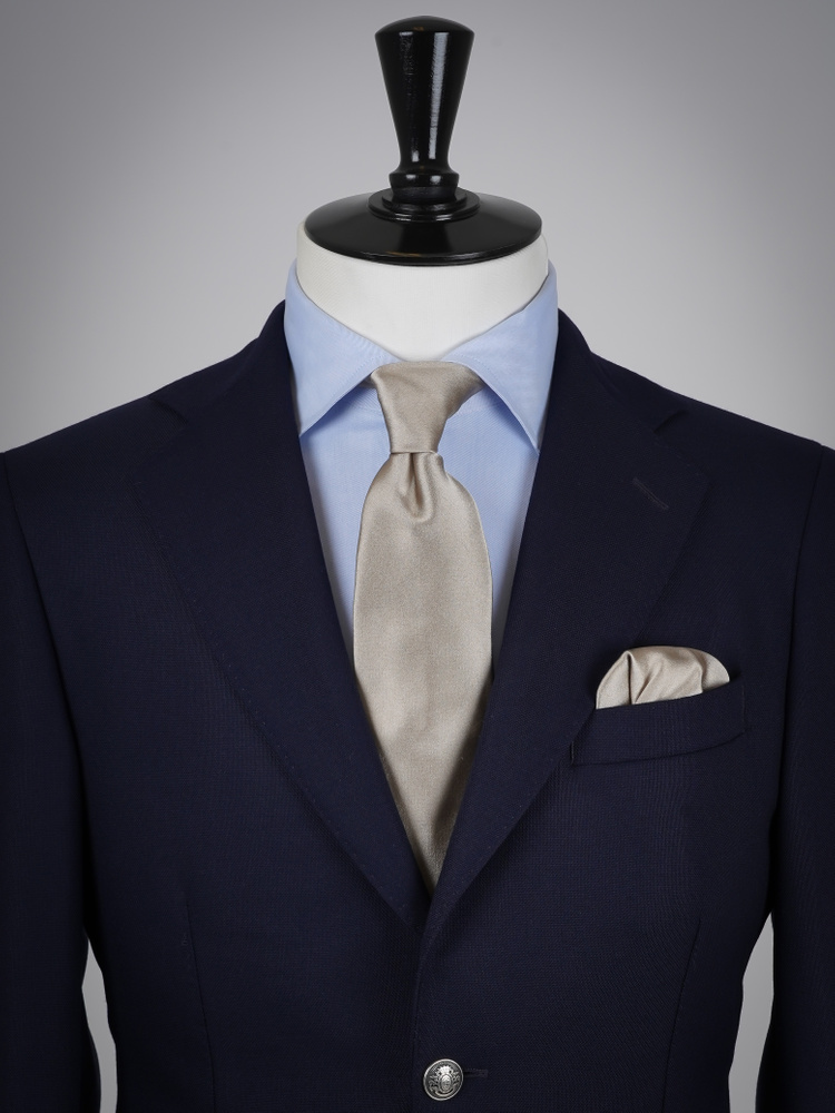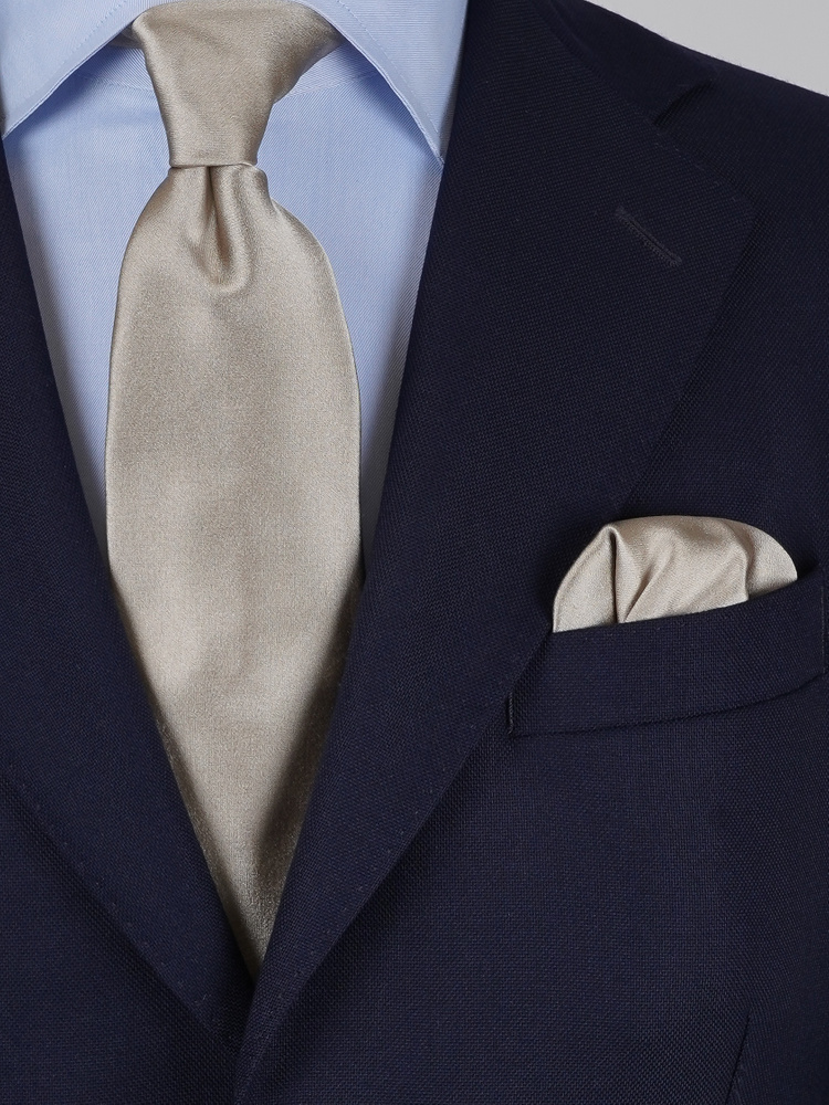 Greige krawat satynowy zestaw z poszetką