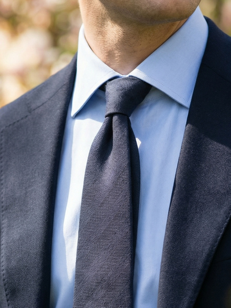 Wąski granatowy krawat Herringbone