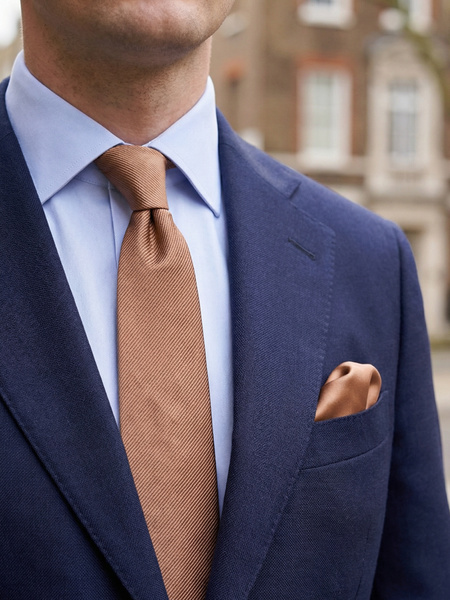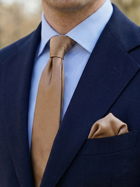 Khaki brązowy krawat satynowy zestaw z poszetką
