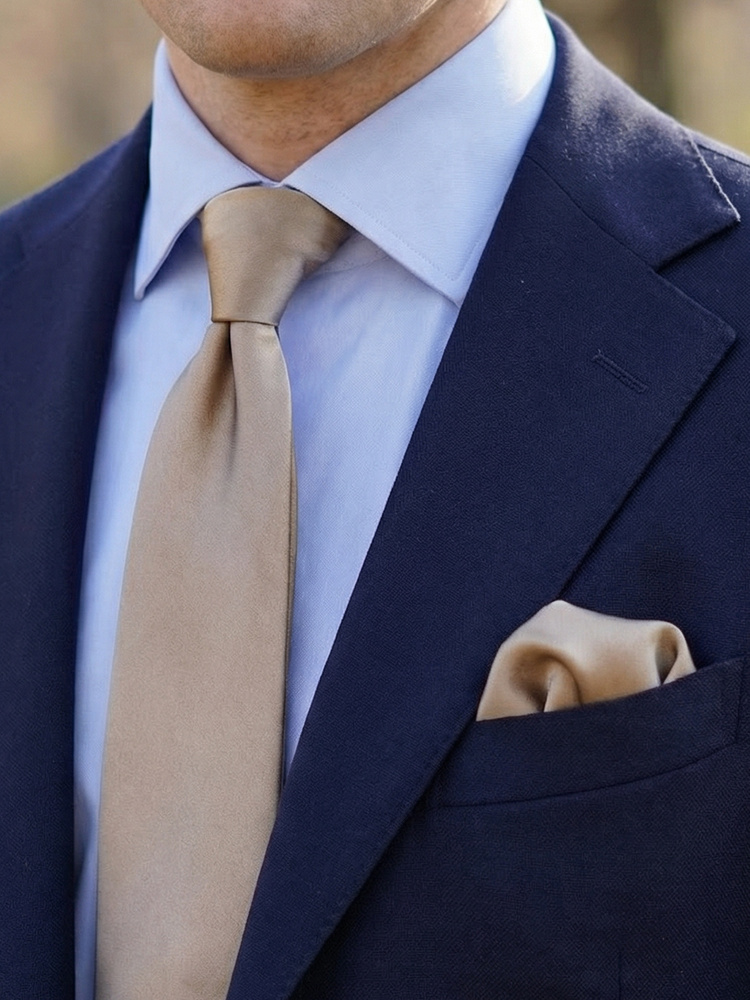 Ciepły beżowy krawat satynowy zestaw z poszetką