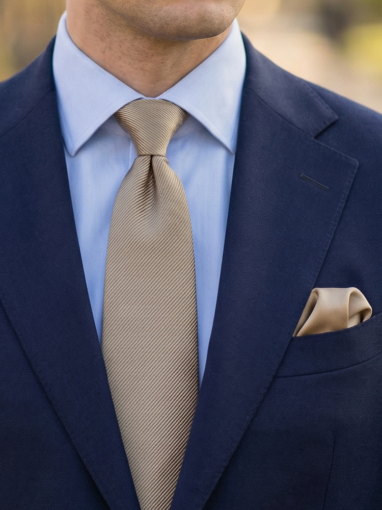 Beżowy jedwabny krawat grenadine zestaw z poszetką