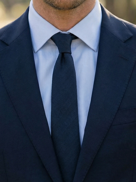 Gravata estreita azul marinho espinha de peixe
