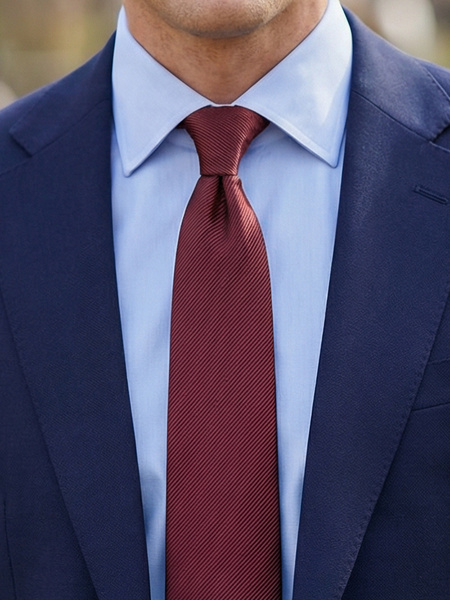 Gravata slim de seda bordeaux & lenço de bolso Lusso