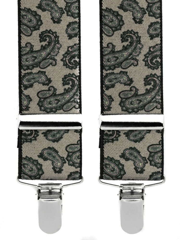 Suspensórios Scottsberry feitos à mão na Itália. Com fivelas de clipe prateadas robustas na frente e atrás, mantêm suas calças firmemente no lugar. Os clipes prateados adicionam um toque elegante que complementa diversos trajes. O comprimento é ajustável na parte de trás com um triângulo de metal. Para máximo conforto, as tiras são de tecido elástico durável com 3,6 cm de largura. Os suspensórios têm cerca de 128 cm de comprimento e se ajustam a homens entre 150 e 190 cm. Inclui garantia de 3 anos e é entregue em um elegante pouch de veludo.