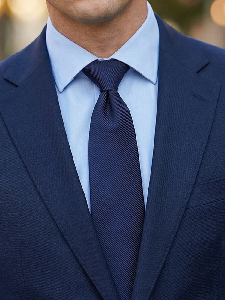 Gravata de cetim azul-meia-noite & lenço de bolso