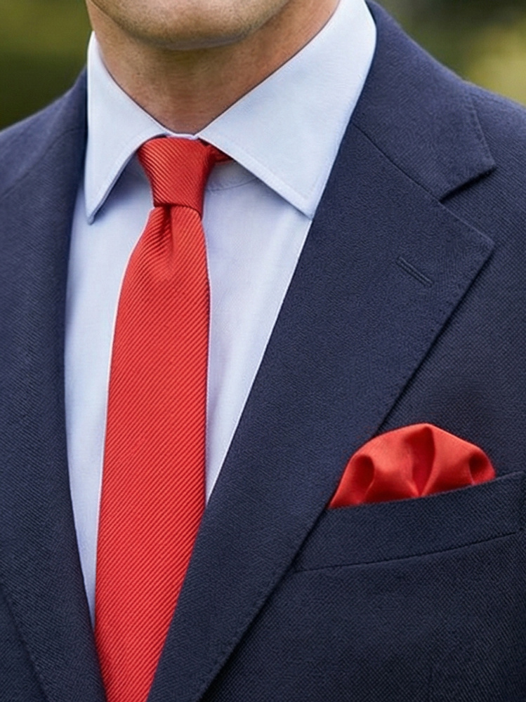 Úzka čerešňovočervená kravata & vreckovka do saka