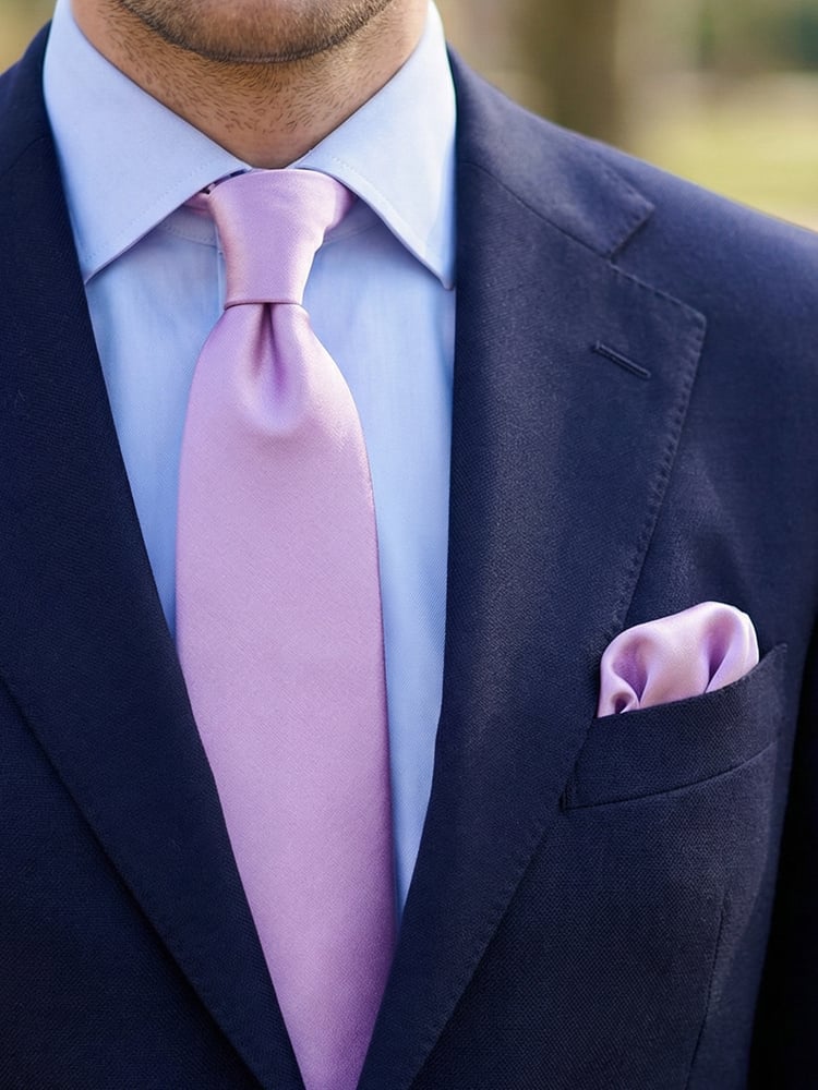 Veľmi svetlo fialový saténová kravata set s vreckovkou