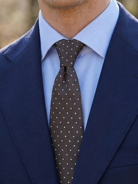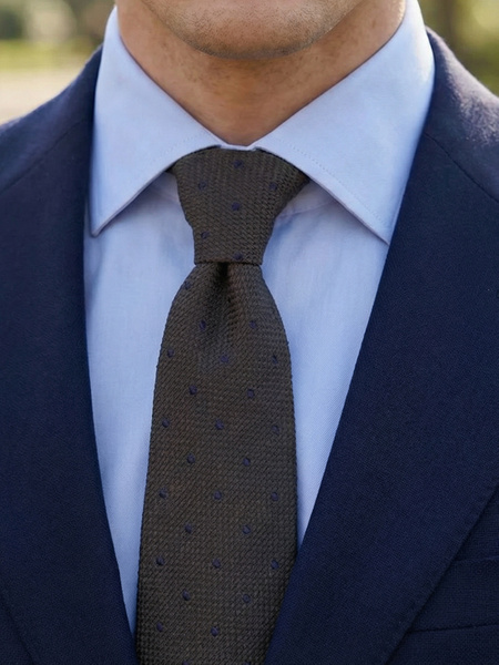 Den prickiga slipsen är en tidlös klassiker inom herrmodet som aldrig går ur tiden. Detta mönster lägger till en lekfull touch till en annars formell eller neutral outfit och kan användas i en mängd olika sammanhang, vilket gör dem till ett bra tillskott i varje stilmedveten mans garderob.