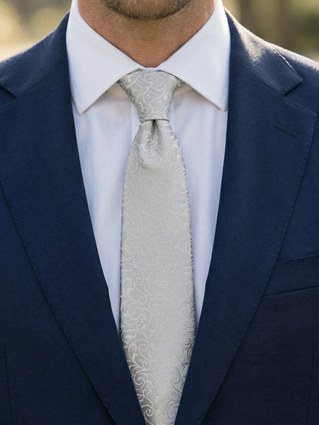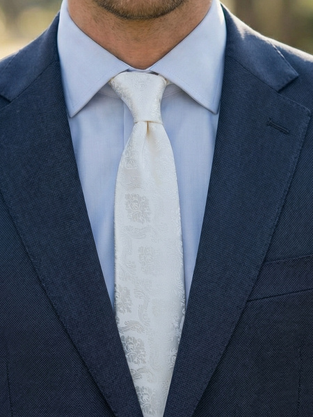 Valet av slips på ett bröllop är en viktig detalj som kan bidra till en elegant och sammanhållen stil. För brudgummen är en klassisk och tidlös slips i en sofistikerad färg som elfenbensvit, silver, eller guld ett populärt val. Dessa färger kompletterar ofta brudens klänning och ger en stilfull och harmonisk look. Ett alternativ är en slips i samma färg som brudbuketten eller andra detaljer i bröllopstemat för att binda ihop helheten.