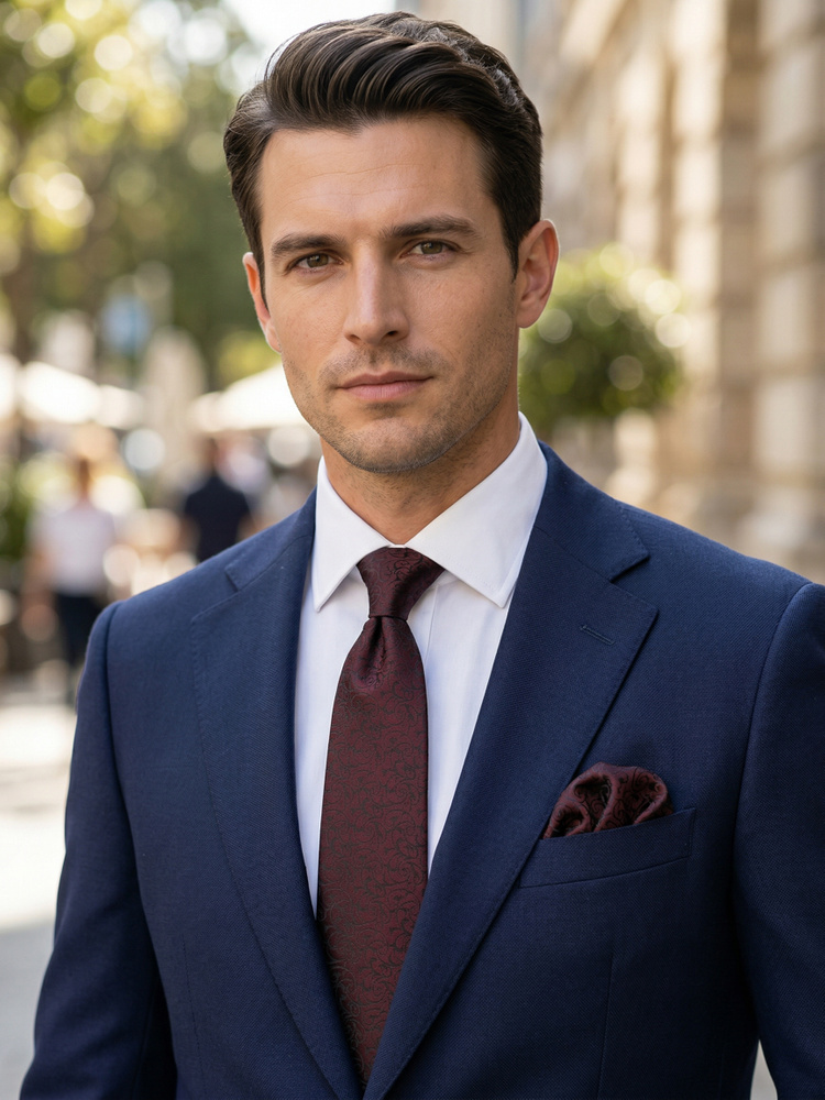 Vinröd oknuten sidenfluga & näsduk Lusso